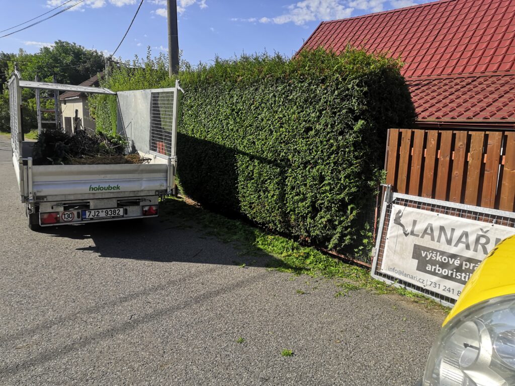 Tvarování živého plotu v Počítkách nedaleko Žďáru nad Sázavou. O plot se staráme pravidelně, což je ideální varianta pro plnou zelenou stěnu. Vzniklý odpad byl následně odvezen na sběrný dvůr.