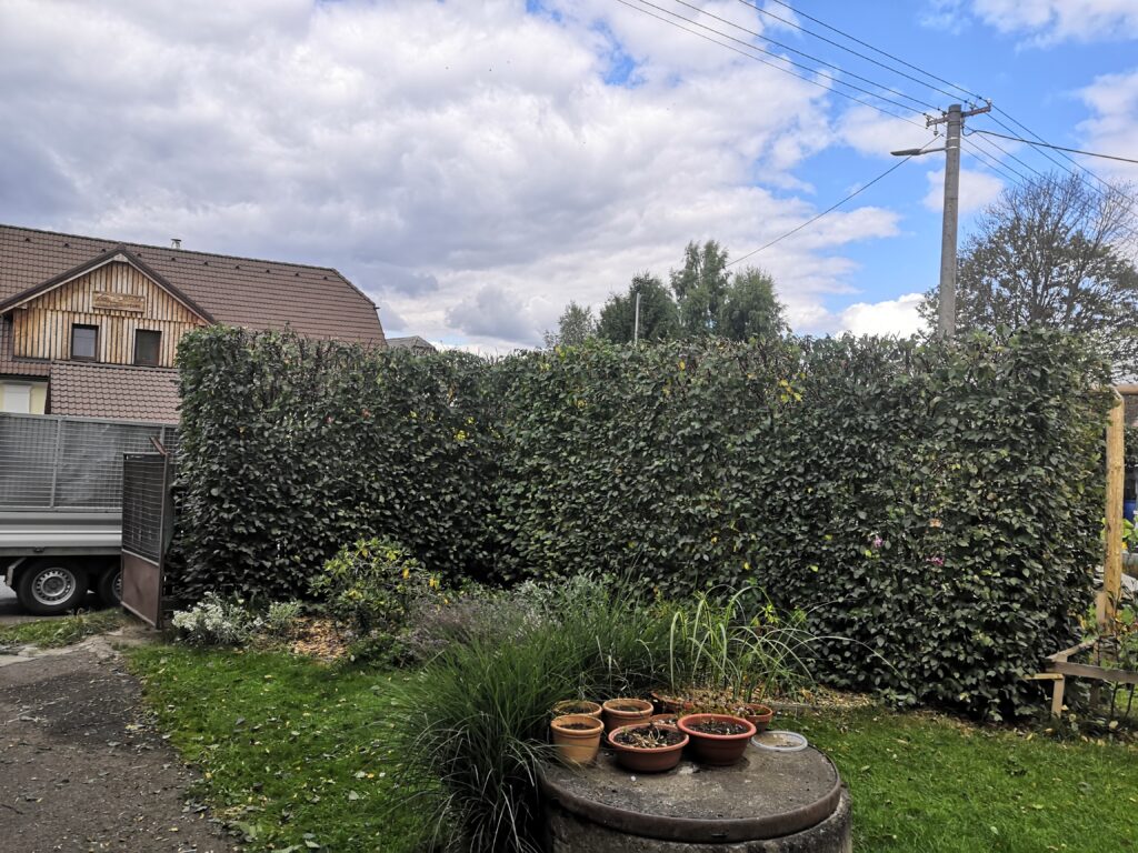Tvarování živého plotu z habru v obci Fryšava pod Žákovou Horou. Údržba plotu proběhla se všech stran, především pak výška byla hlavní aby se podpořilo houstnutí plotu v nižších částech. Vzniklý odpad byl namístě poštěpkován.